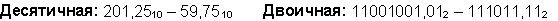 Ответ: 201,2510 – 59,7510 = 141,510 = 10001101,12 = 215,48 = 8D,816.
