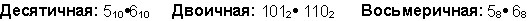 Ответ: 5*6 = 3010 = 111102 = 368.