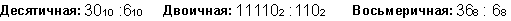 Ответ: 30 : 6 = 510 = 1012 = 58.